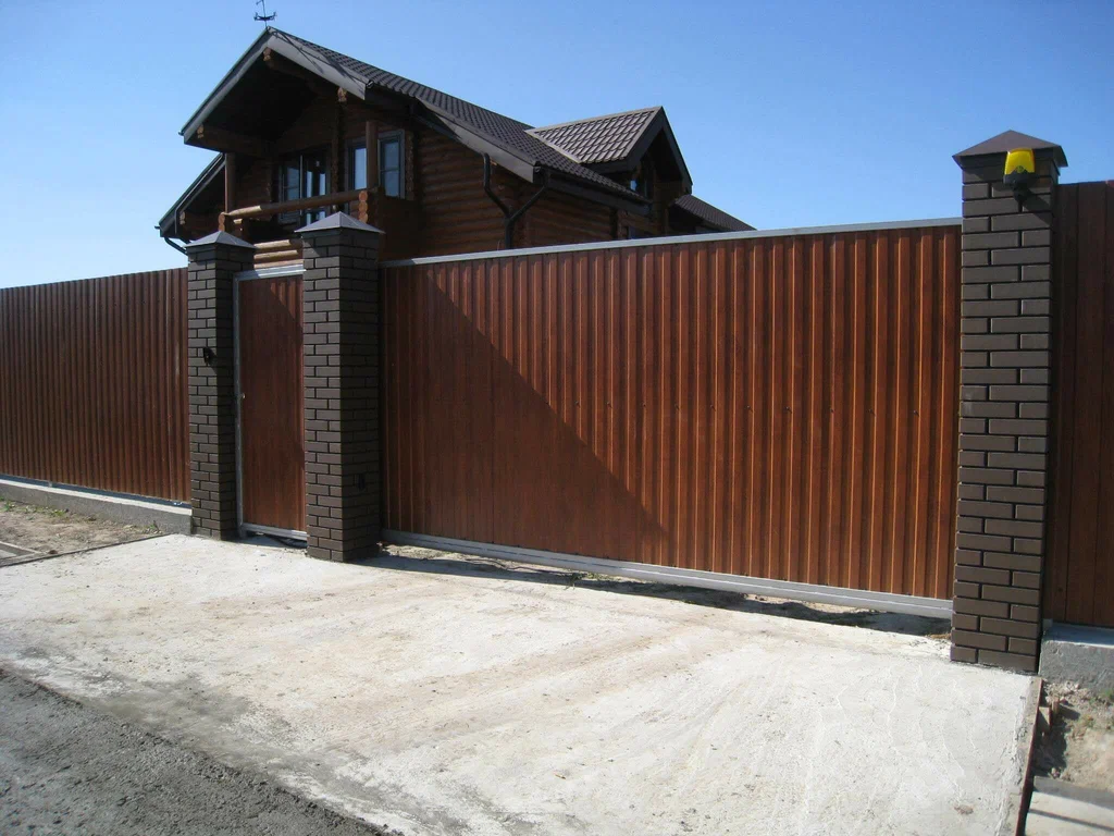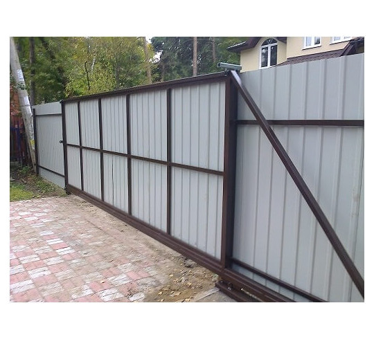 Откатные ворота из профнастила с автоматикой